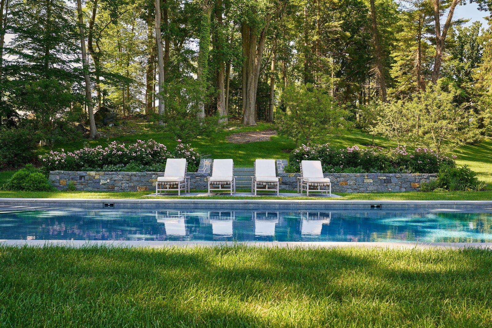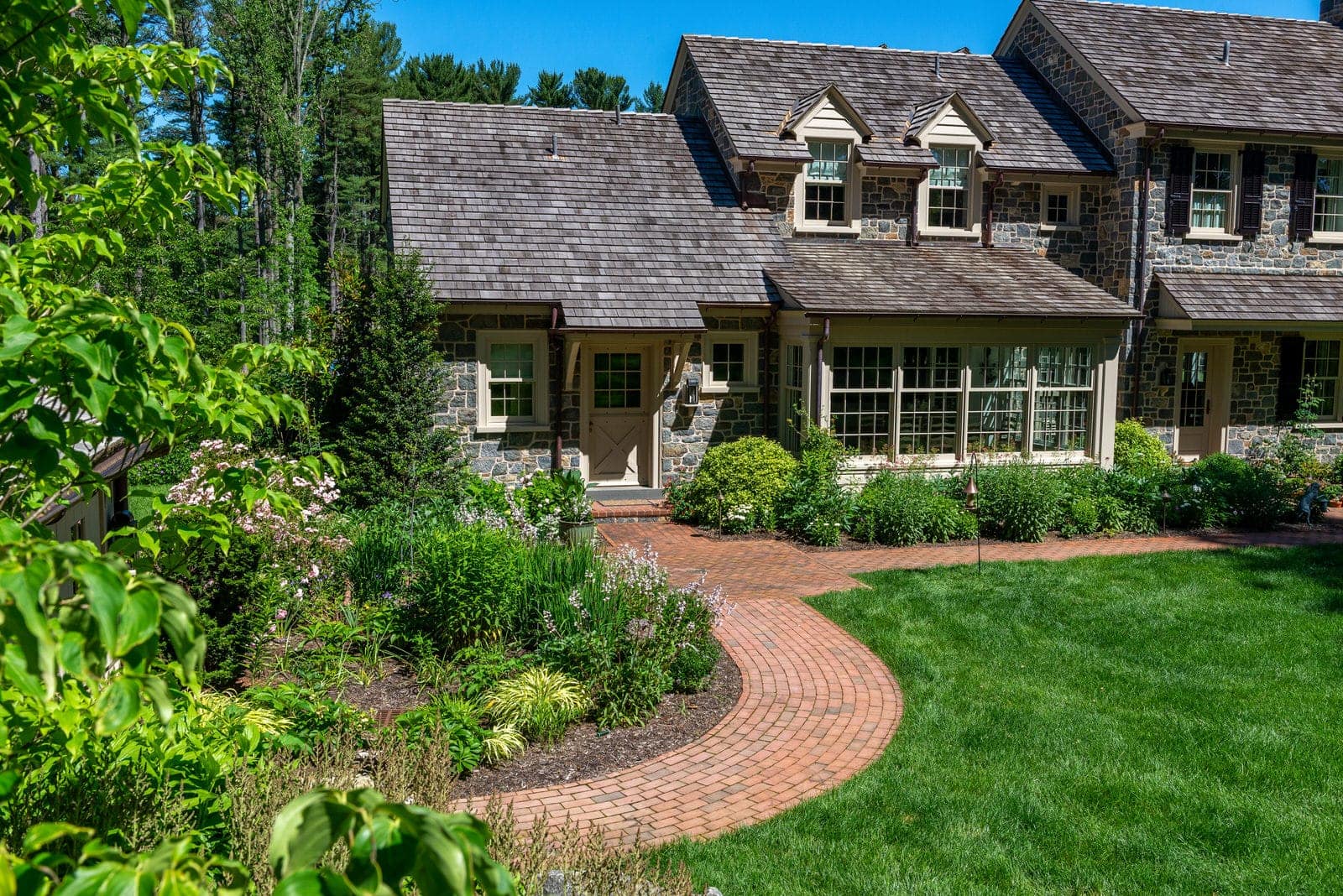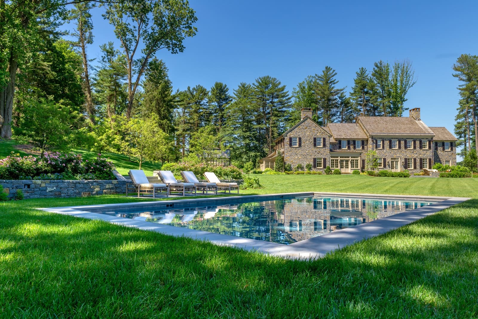 Inspired by the local bucolic architecture that has shaped this community for centuries, this newly built stone country farm house is successfully positioned in the center of a 7-acre rolling site, securing scenic views across a meadow, extending to the neighboring pond and valley below. A conservation easement of almost 3 acres helped maintain a perimeter of mature trees, providing an immediate sense of belonging for the new home. Intentionally intimate garden spaces feature a refined palette blending ornamental structure with native interest. A petite greenhouse provides an anchor within the garden and a place for our clients to explore their passion for gardening. The pool, timeless in its simplicity, floats within the lawn as a serene destination from which to enjoy the full scenic offerings of the site.