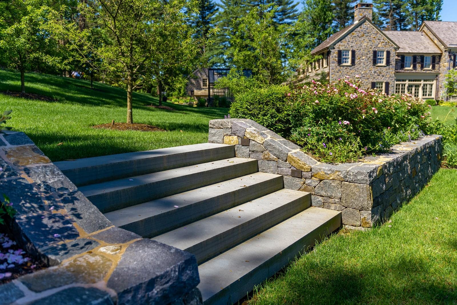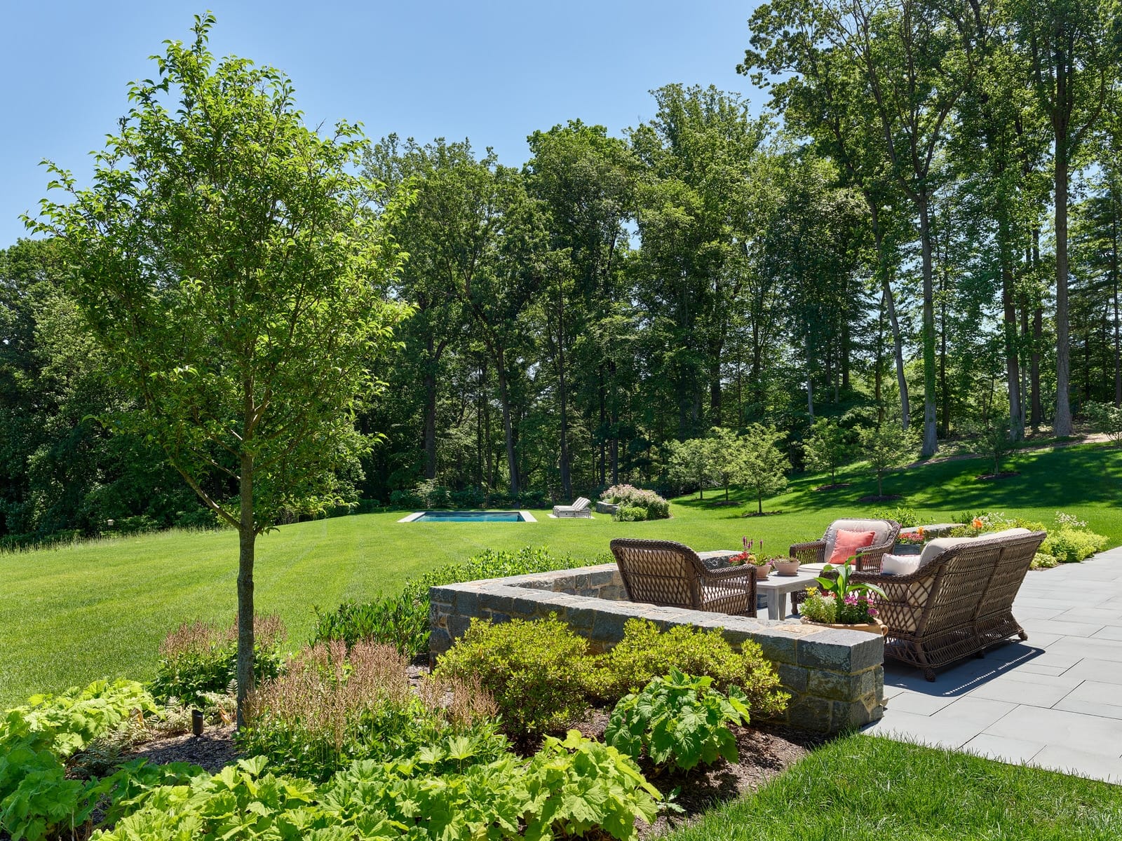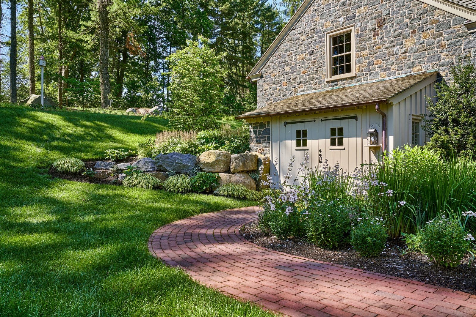 Inspired by the local bucolic architecture that has shaped this community for centuries, this newly built stone country farm house is successfully positioned in the center of a 7-acre rolling site, securing scenic views across a meadow, extending to the neighboring pond and valley below. A conservation easement of almost 3 acres helped maintain a perimeter of mature trees, providing an immediate sense of belonging for the new home. Intentionally intimate garden spaces feature a refined palette blending ornamental structure with native interest. A petite greenhouse provides an anchor within the garden and a place for our clients to explore their passion for gardening. The pool, timeless in its simplicity, floats within the lawn as a serene destination from which to enjoy the full scenic offerings of the site.
