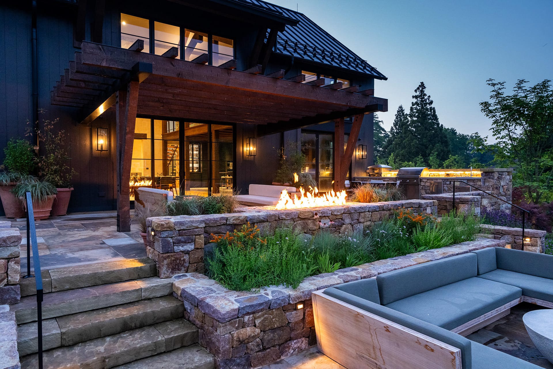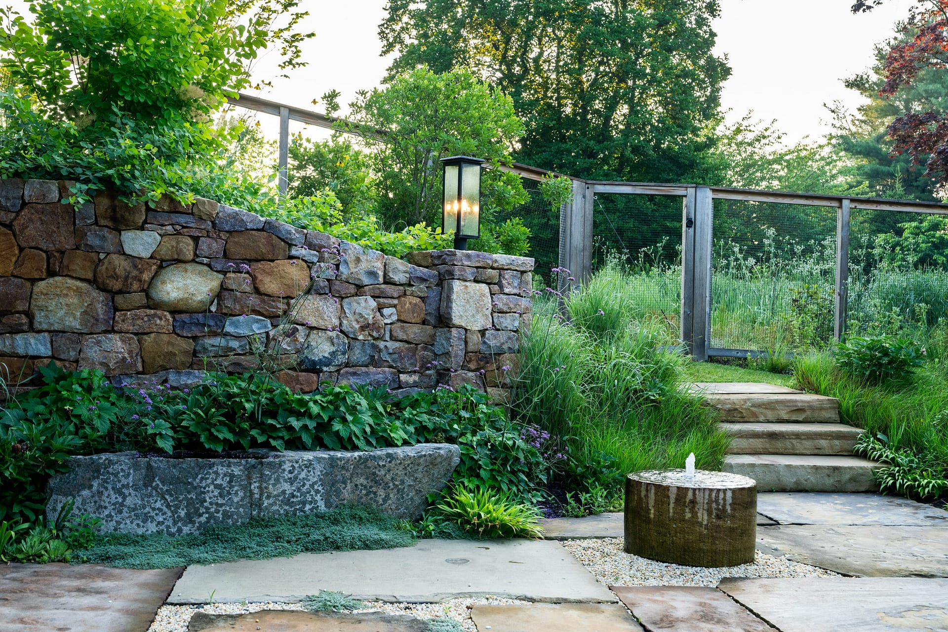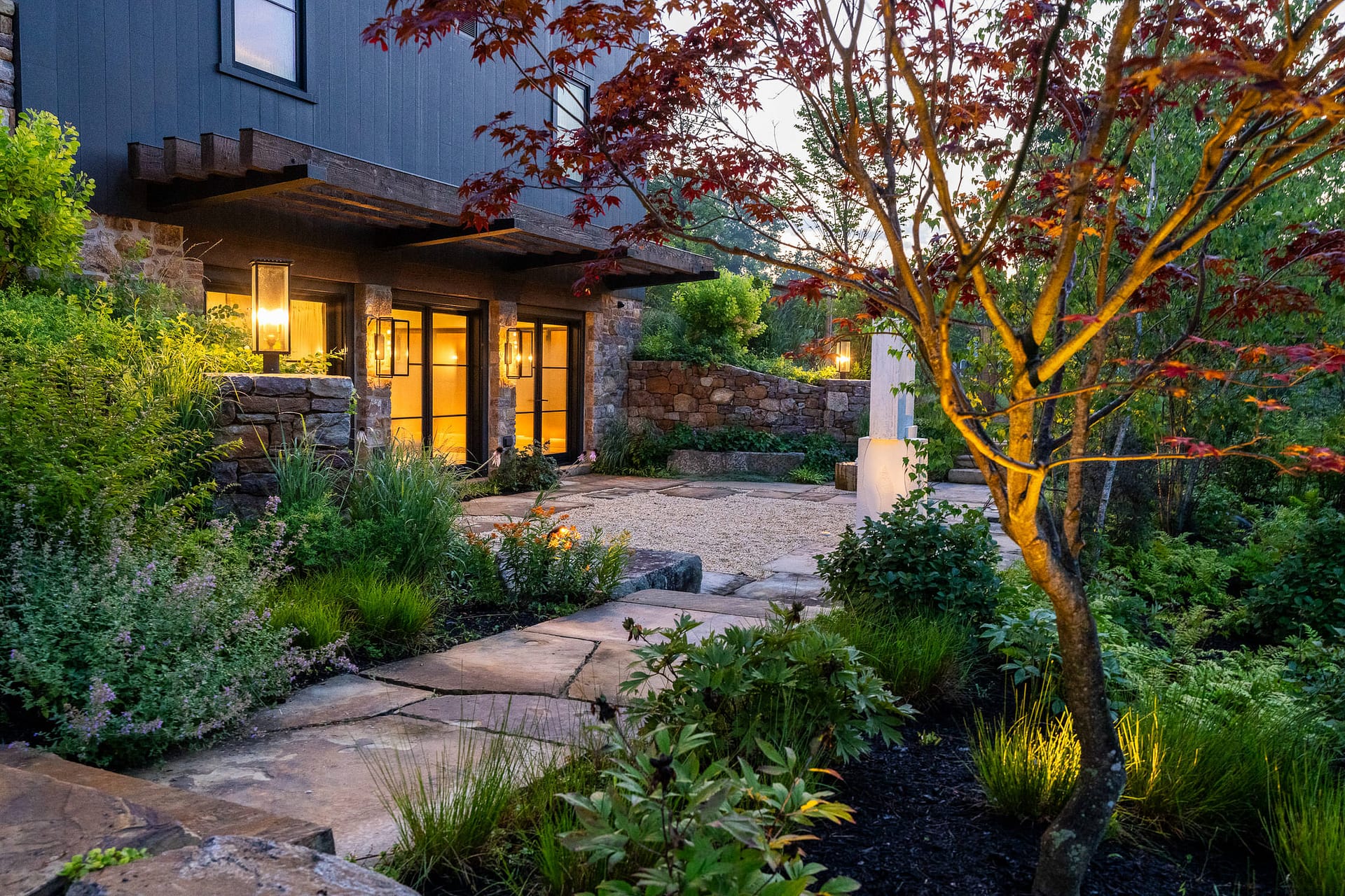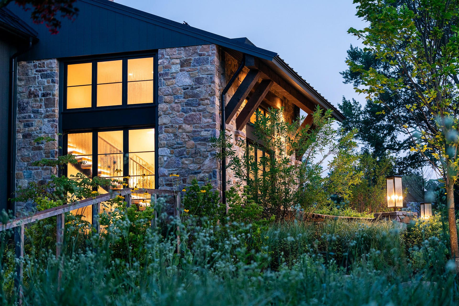 On a serene four-acre coastal property in New Jersey, a Pennsylvania-style barn has been transformed into a contemporary family sanctuary. Heritage, creativity, and connection converge in every corner. Vintage collectibles link past and present. Rustic charm meets modern elegance. The property feels timeless yet alive with daily life. At its heart, the entertainment barn anchors family gatherings. Sunlight floods the great hall. Surrounding it, a chef’s kitchen, wine tasting room, pottery studio, game room, and spa invite creativity, relaxation, and shared joy. Outside, the landscape comes alive. A greenhouse and vegetable garden encourage hands-on family engagement. Native plantings support surrounding wildlife, creating a vibrant, pollinator-rich tapestry. Fruiting trees, berry bushes, and herbs weave edible abundance through native grasses, perennials, and flowering shrubs. Layered textures, shifting seasonal colors, and meandering paths create discovery, movement, and quiet reflection. Garden terraces frame views, offering spaces for play, work, and rest. A new tennis court—the original spark for the project—anchors the recreational side of the property. From concept to completion, architecture and landscape were envisioned as one, resulting in a cohesive retreat that fosters family and celebrates the beauty of the built and natural world alike.