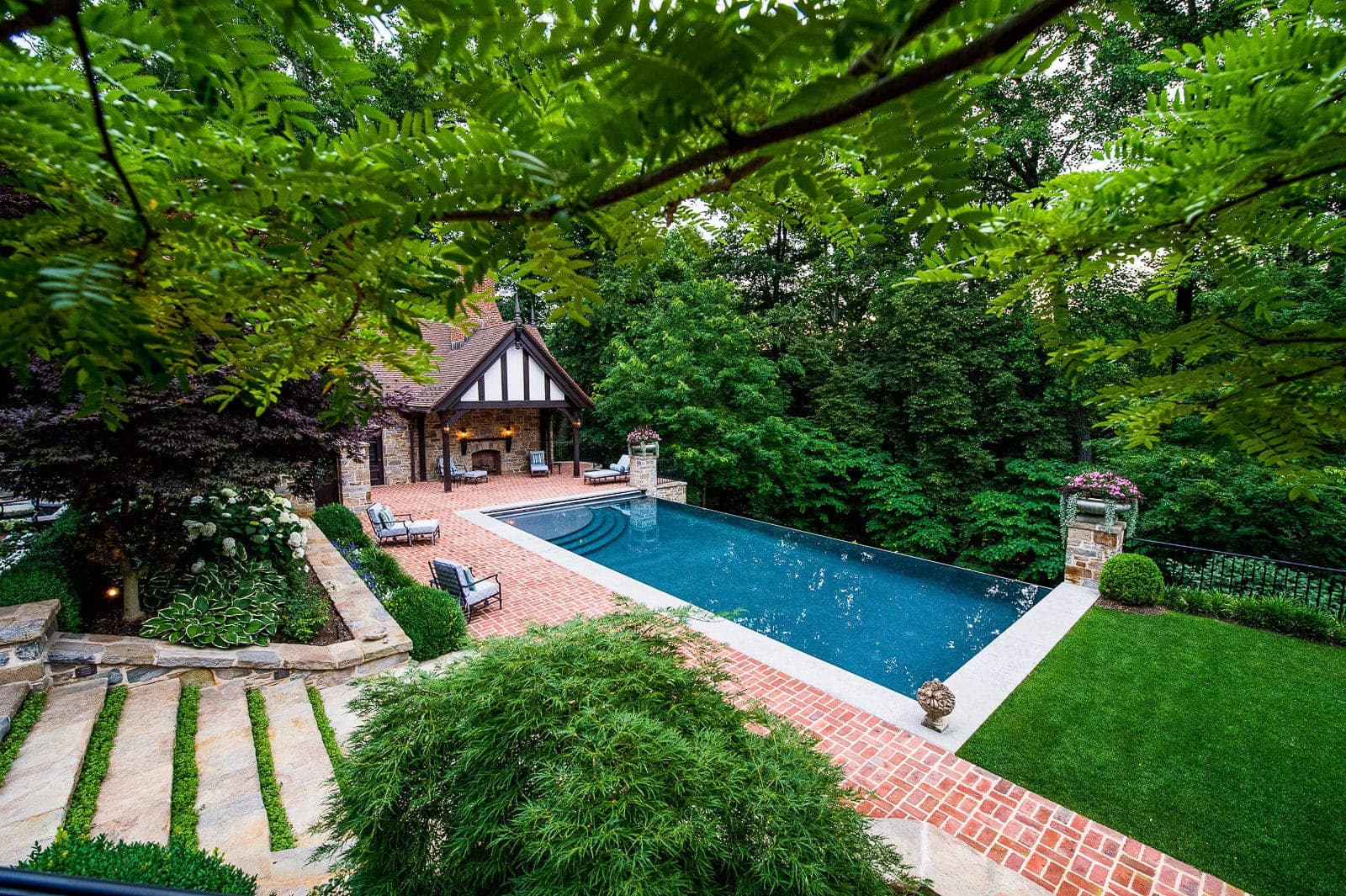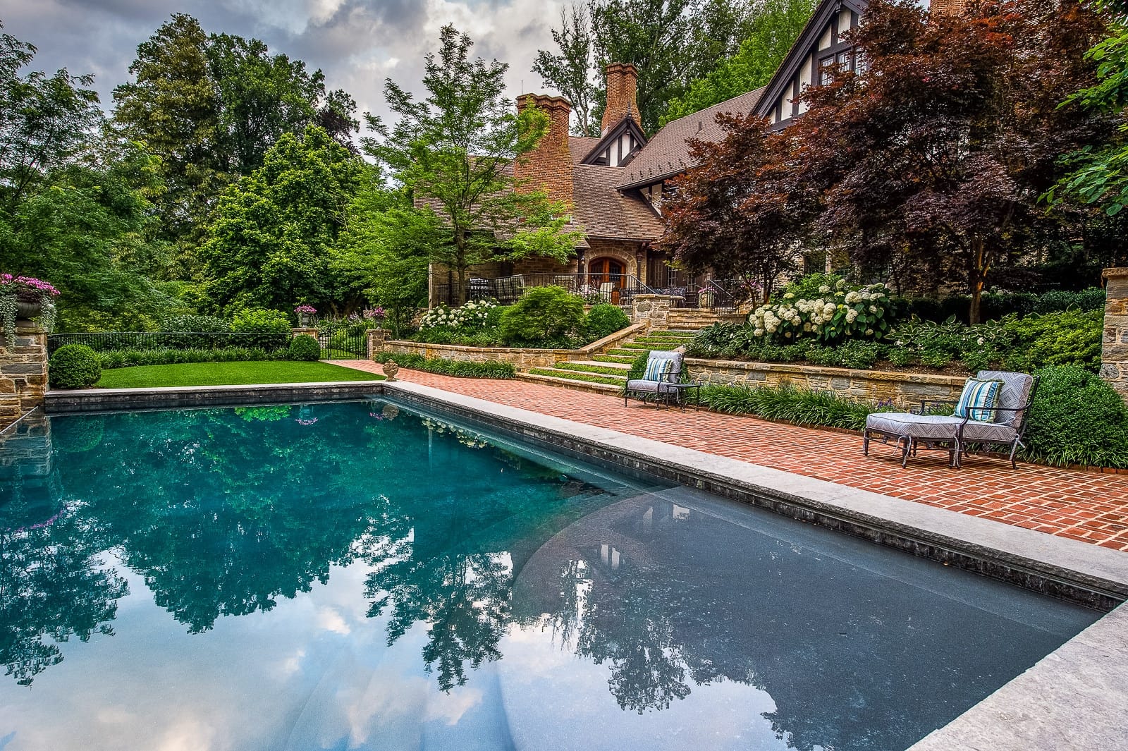 This project required a multi-year build out and intense scrutiny of all design details. Every aspect of the exterior design of this six acre property was analyzed and predetermined. Traditional detailing was employed to complement the English Tudor architecture, yet the infrastructure utilized throughout is thoroughly modern. Thematic garden areas were developed to indulge a diverse range of sensory experiences, including a Woodland Garden, a Pool Garden, a Formal Garden, and a Secret Garden.